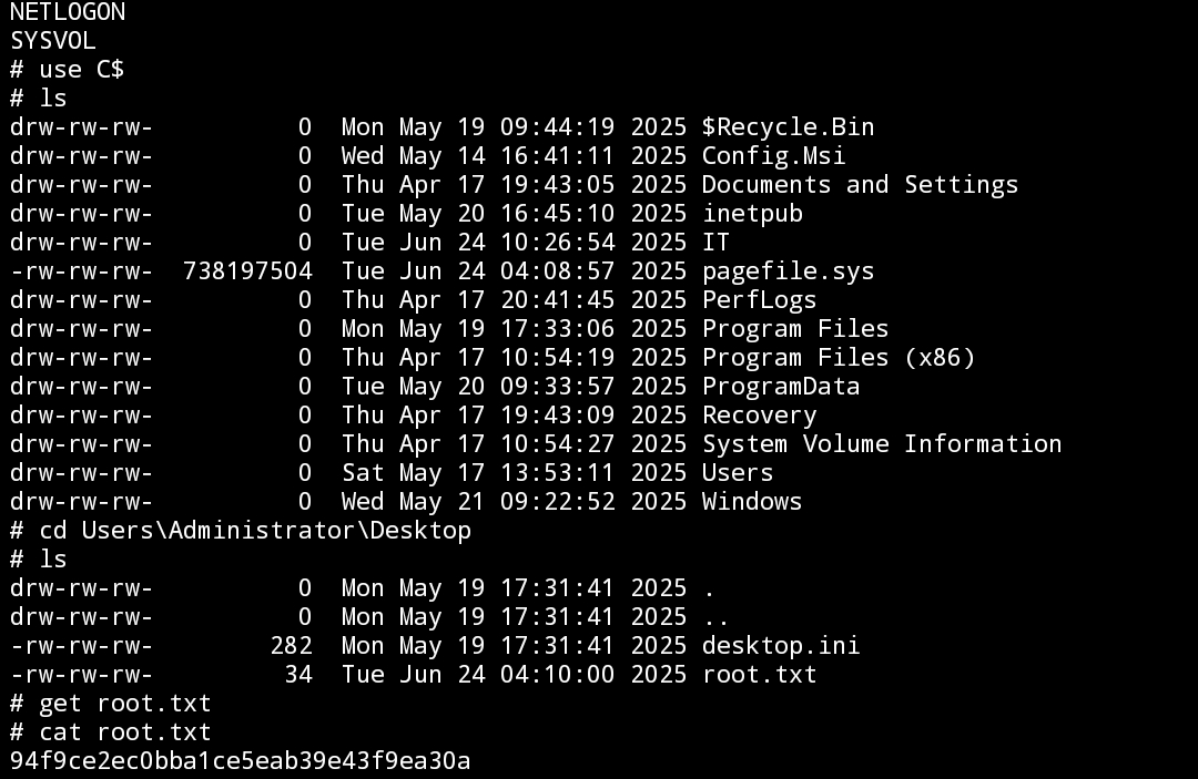 SMB 10.129.128.33 445 DC01 SYSVOL READ Logon server share